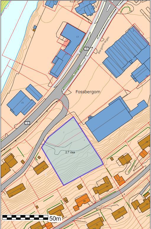 • Fossbergom sentrum: 2 tomter på 2,9 daa. Regulert område, i dag brukt til elbil-parkering. Grunneigar: Lom kommune.
